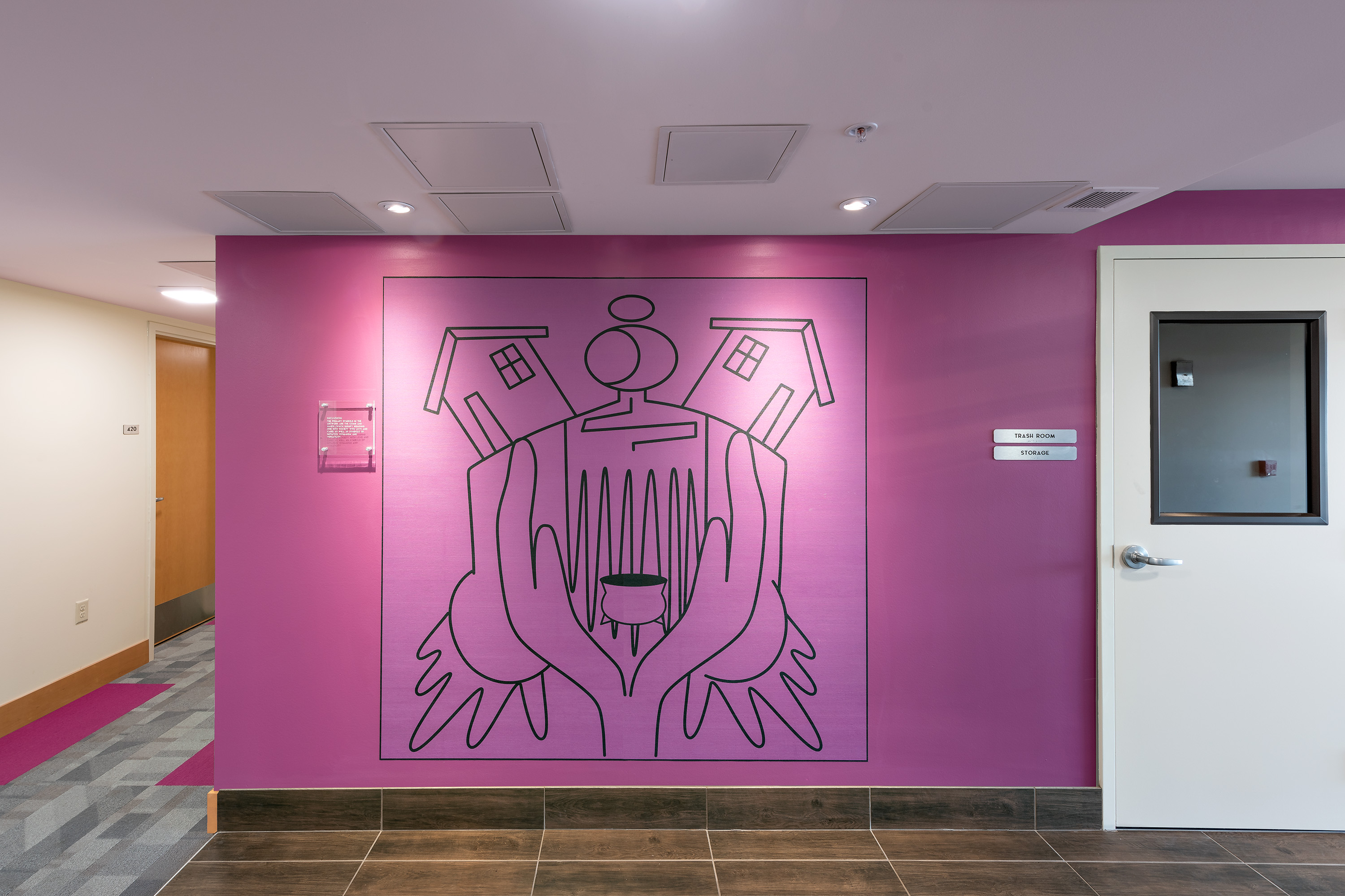 Great River Landing is a housing development designed by 4RM+ULA to provide stability and support for 72 adult men recovering from the traumas of unemployment, homelessness, and incarceration. Located in a challenging, industrial area near bridges and freeway off-ramps, the project addresses the deep needs of marginalized individuals in a city marked by racial inequities. In response to community input and extensive engagement, 4RM+ULA shifted the focus from conventional amenities, like basketball courts, to creating spaces that prioritized family connection, personal growth, and communal living. The design includes classrooms, meditation spaces, meeting rooms, and lounges—environments that foster healing and re-integration into society.